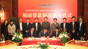 11月7日下午,通能精機(jī)“熱加工中心建設(shè)項(xiàng)目”銀團(tuán)貸款簽約儀式隆重舉行,通能精機(jī)項(xiàng)目一舉簽定融資4.4億元授信協(xié)議。市財(cái)政局局長(zhǎng)陳照東、國(guó)資委主任李桂順、南通產(chǎn)控集團(tuán)董事長(zhǎng)杜永朝、總經(jīng)理陸強(qiáng)新以及工商銀行南通分行劉小全行長(zhǎng)、上海浦發(fā)南通分行李建宏行長(zhǎng)、南通科技總經(jīng)理凌衛(wèi)國(guó)等出席簽約儀式。 通能精機(jī)建設(shè)項(xiàng)目是南通科技重點(diǎn)建設(shè)項(xiàng)目之一,總投資10億元,建成后將成為蘇北地區(qū)乃至華東地區(qū)最大的熱加工中心。此次銀團(tuán)貸款協(xié)議的簽訂,將為建設(shè)中的通能精機(jī)提供了強(qiáng)有力的資金保證,創(chuàng)下了南通科技單筆最大的授信紀(jì)錄。 簽約儀式上,通能精機(jī)總經(jīng)理武立新與銀行代表簽訂貸款協(xié)議,南通科技凌衛(wèi)國(guó)總經(jīng)理與銀行代表簽訂擔(dān)保協(xié)議。工商銀行、浦發(fā)銀行的兩位行長(zhǎng)講話預(yù)祝簽約儀式取得成功,認(rèn)為,南通科技具有廣闊發(fā)展前景,銀行將不遺余力支持企業(yè)發(fā)展。南通科技總經(jīng)理凌衛(wèi)國(guó)表示將全力以赴做好項(xiàng)目建設(shè),力爭(zhēng)早投產(chǎn)、早獲益。 |