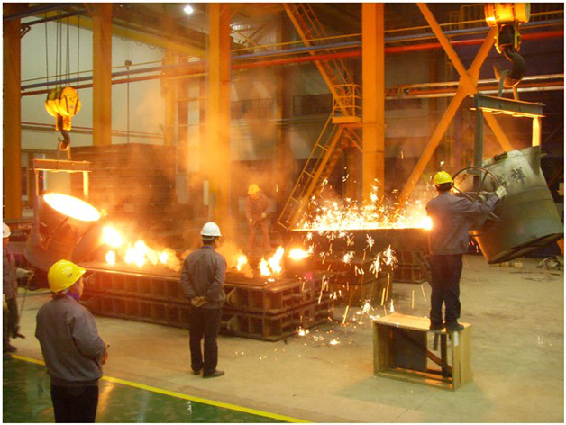 12月20日下午1點08分,通能精機中小件鑄造廠房內,隨著一聲開始出水,當班熔煉值班長陳富敏拔動爐臺上的操作臺操作桿,電爐爐蓋平穩打開,爐體靠氣缸緩慢撐起傾斜,當爐體內已熔化的鐵水傾倒入鐵水包內,頓時鐵花飛濺,似金花飛舞,隨著眾人的注目及掌聲,標志了通能精機中小件鑄造電爐出鐵水調試成功。 自南通機床廠創建以來,鑄造生產一直是采用沖天爐熔煉澆注,隨著時代的變遷、科學的進步、企業的發展,新通能規劃采用了具有世界先進水平的德國ABP公司生產的感應電爐,這種設備對材料加熱效率高、速度快,低耗節能環保,且具有數字智能化,用電腦來操控,熔煉方式為一控二爐的“一拖二”形式。經過供應商反復調控之后,于18日筑爐,19日燒結爐,20日出鐵水,驗證設備的功效。20日當天試出鐵水的是1號東2爐,每爐8噸鐵水。當第一爐的鐵水倒入的第一包鐵水出水溫度測出為1516℃,符合出水要求,然后以1356℃的澆注溫度澆注通能重型裝配廠房使用的重達1噸的基礎槽鐵,鐵水澆注過程穩定、無異常,最終,當天以3爐12包鐵水完成了中頻感應電爐最后一步調試工作。公司總經理沈春華,公司副總、通能精機董事長、總經理陳志祥等相關領導到現場觀看了感應電爐燒結調試階段出鐵水過程。 隨后,通能精機陳總召集現場操作的技術質量、造型、熔煉、澆注等相關人員進行了電爐調試之后的總結分析會,并修正和規范了熔煉、澆注的操作要求和注意事項。(南通科技陳輝珉供稿)