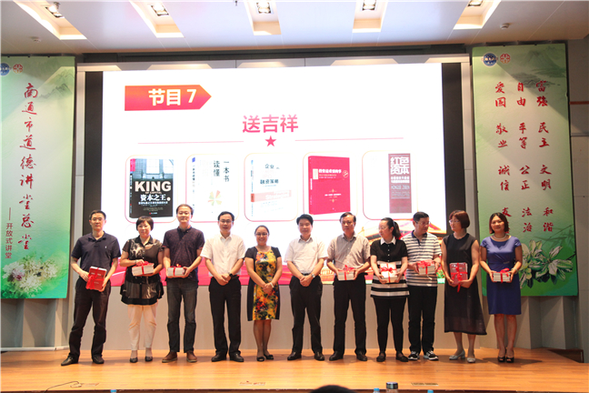 本次活動(dòng)圍繞“誦經(jīng)典”“學(xué)模范”“展風(fēng)采”“話廉潔”“觀情景劇”“談感悟”“送吉祥”“唱歌曲”八個(gè)環(huán)節(jié)開展。詩朗誦《實(shí)干才能夢想成真》重溫了習(xí)總書記提出的“中國夢”,堅(jiān)定了大家在平凡崗位上創(chuàng)造不平凡的信心;江天化學(xué)吳松華、精華集團(tuán)朱玉娟兩位同志的先進(jìn)事跡讓大家在身邊人、身邊事中找到感動(dòng);情景劇《春風(fēng)里的故事》讓大家在忍俊不禁中體味到資產(chǎn)管理一線員工的不易和他們迎難而上的信心;一曲《真心英雄》展現(xiàn)出了集團(tuán)職工團(tuán)結(jié)向上的蓬勃朝氣,也將活動(dòng)推向高潮。在“送吉祥”環(huán)節(jié),集團(tuán)領(lǐng)導(dǎo)將精心挑選的《投資最重要的事》等金融書籍贈(zèng)予各投資企業(yè)代表,勉勵(lì)他們加強(qiáng)學(xué)習(xí),不斷創(chuàng)新,用拼搏和奉獻(xiàn)實(shí)現(xiàn)集團(tuán)的跨越發(fā)展。