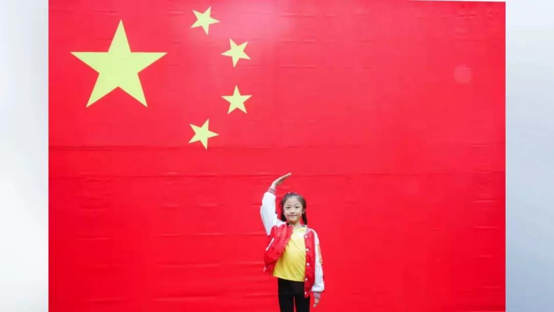 在水繪園風景區,他們看到了一幅巨大的五星紅旗。周啟明拿出手機,拍下自己和女兒與國旗合影的畫面,讓孩子接受愛國主義教育。這時,正好碰上了攝影師徐慧,拍下了這幅幸福溫馨的照片。
