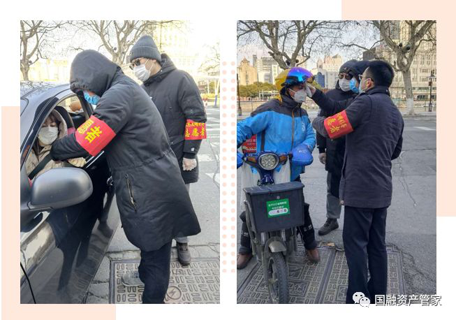 2月15日下午,南通和平橋街道起鳳社區工作人員例行檢查時,公司領導班子偶然獲悉,為全面控制疫情,起鳳社區采取應急措施,對所轄區域進行封閉式管理,由于端平橋和起鳳街道兩路口居民、菜市場人流量極大,起鳳社區15名工作人員從大年三十起,已連續多日在崗未能休息,防控路口執勤人手嚴重不足,管理困難。 疫情就是命令,疫情就是召喚 在產控集團黨委領導下,國融公司黨委果斷決策,勇于作為,作為國企,我們有責任和義務為社會貢獻一份力量;公司緊急向全體員工發出了倡議,于是國融員工群里就出現了上述感人的一慕…… 為更好配合社區的統籌安排,需要在公司近三分之二以上都報了名的員工中選取八名同志組成第一批志愿者,黨員同志沖鋒在前,普通員工也當仁不讓,公司黨委創造性的研究決定,考慮個別特殊情以外,其他同志一律以報名時間先后順序選定,其余人員作為后備梯隊隨時替補,八人戰“疫”突擊小分隊迅速組成。