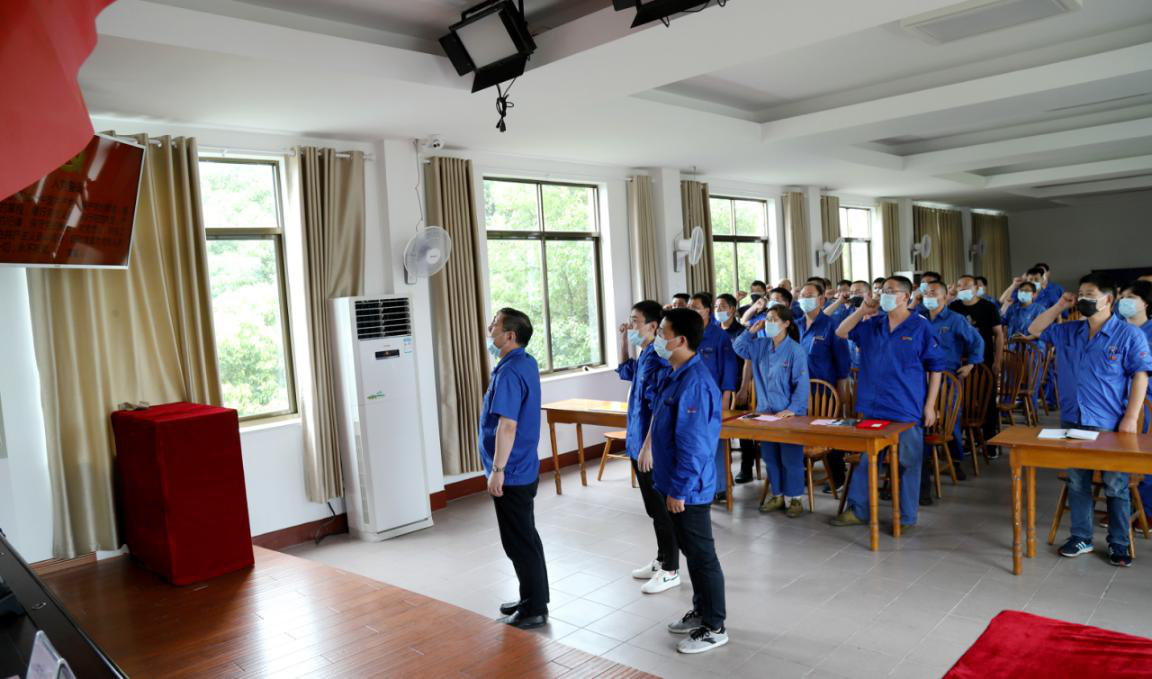 大會在莊嚴的國歌聲中拉開帷幕。黨委委員、紀委書記陸輝代表公司黨委宣讀了表彰決定,劉永等18名同志被授予“優(yōu)秀共產(chǎn)黨員”的稱號,錢紅斌、顧金華、李淑娟被授予“優(yōu)秀黨務(wù)工作者”的稱號,壓焙車間黨支部和科室第二黨支部被授予“先進黨支部”的稱號。公司領(lǐng)導為受表彰的先進集體和先進個人頒獎。 黨員代表黃建在會上作了交流發(fā)言。 在紀委書記陸輝的帶領(lǐng)下,新黨員面對黨旗莊嚴的入黨宣誓,老黨員重溫入黨誓詞。