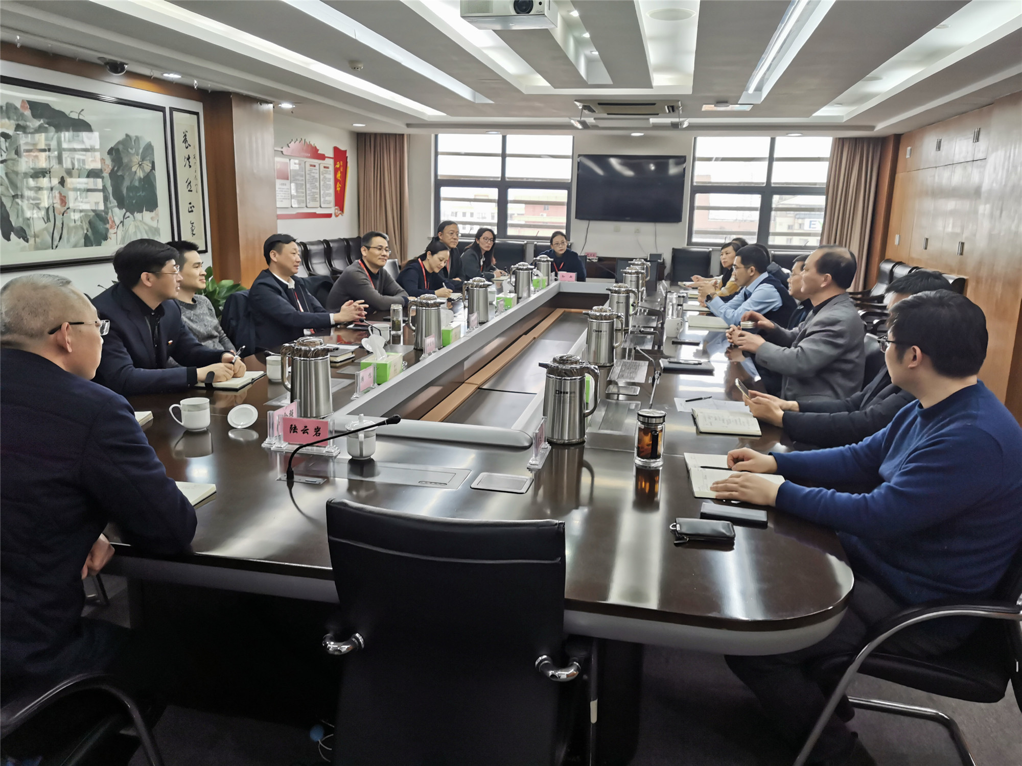 2月26日下午,南通軌道交通有限公司黨委書記、董事長王智帶領(lǐng)相關(guān)人員來產(chǎn)控集團(tuán)交流。產(chǎn)控集團(tuán)黨委書記、董事長張劍橋,總經(jīng)理顧建國等領(lǐng)導(dǎo)及相關(guān)部門負(fù)責(zé)人參加了座談會。
