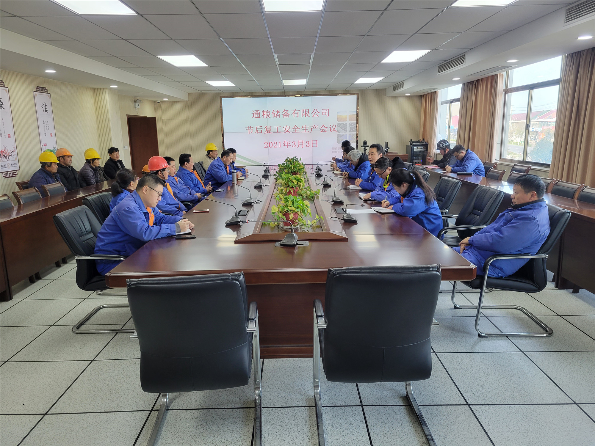 3月3日上午,南通通糧糧食儲備有限公司召開節后復工安全生產會議,公司全體在崗職工和外包作業工人參加了此次會議。