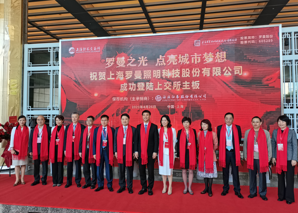 4月26日,羅曼照明科技股份有限公司(股票簡稱:羅曼股份)在上海證券交易所掛牌上市交易,成功登陸A股主板,股票代碼:605289,發行價格27.27元/股,發行新股2167萬股。