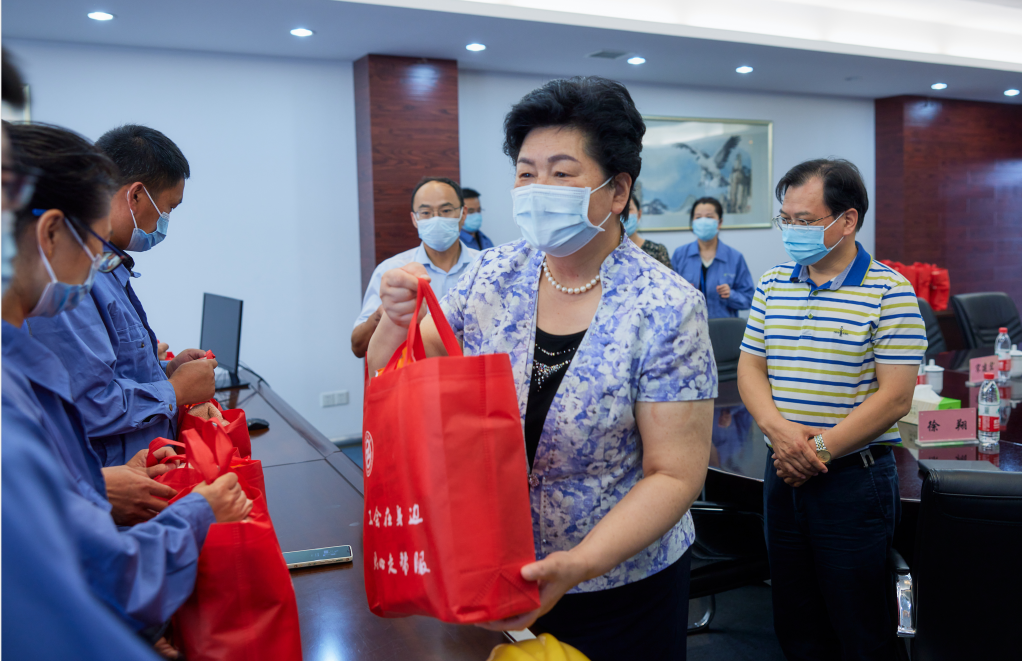 一下車,葛玉琴一行首先參觀了北廠區(qū)主要產品裝置,詳細了解了當前疫情防控工作情況,走進車間慰問一線員工并,送上防暑用品。葛玉琴指出,要嚴格按照上級部門的有關部署,毫不松懈地抓好抓實防疫工作,規(guī)范執(zhí)行各項規(guī)章制度,強化應急處置能力,切實做好外來人員、車輛等日常查驗工作。員工們在落實安全生產崗位職責的同時,做好疫情期間個人防護。她表示,“職工群眾是最樸素的人”,各部門要關心關愛高溫一線員工,更好保障職工群眾正常生活,維護公司安全有序運行。要進一步重視產業(yè)工人隊伍改革,在公司轉型發(fā)展階段,加強政治引領,更好地發(fā)揮企業(yè)職工干事創(chuàng)業(yè)主心骨的作用,提升企業(yè)凝聚力、向心力和生命力。