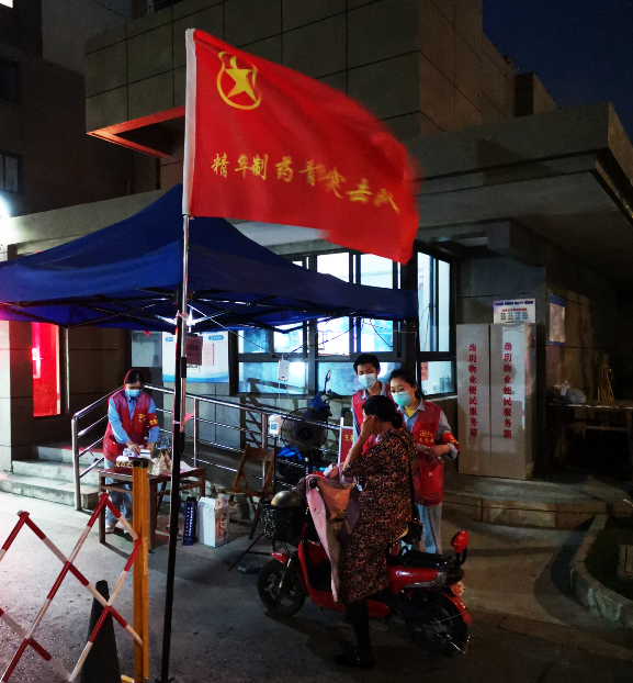 8月27日,精華制藥制劑生產分公司與曙光社區組織開展“兩在兩同,同心抗疫”共建活動,精華制藥19名正式黨員和青年骨干成立黨員先鋒隊、青年突擊隊,進入曙光福里小區,重點配合基層做好勸導進出人員嚴格實行“戴口罩、測體溫、亮碼通行”等工作,筑牢小區疫情防控主陣地。