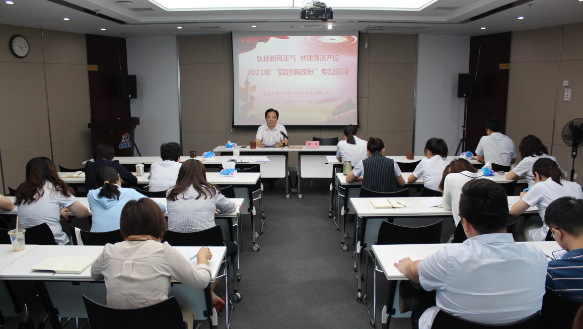 近日,眾和擔保黨支部組織開展“算好廉政賬”主題黨日活動,全體黨員、入黨積極分子、公司領導班子成員、中層以上干部及子公司領導班子成員參加,活動由黨支部書記何葉主持。