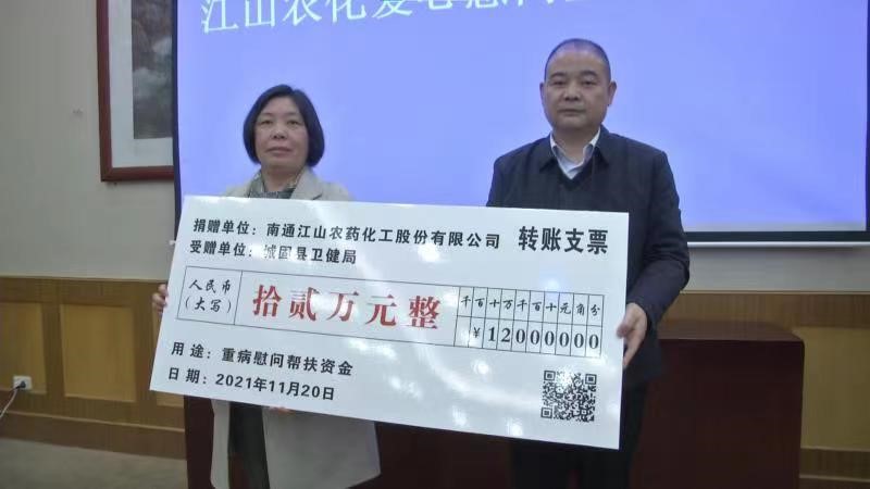 11月19-21日,江山股份參與南通開發(fā)區(qū)管委會(huì)組織的蘇陜協(xié)助考察交流活動(dòng),在城固縣-南通開發(fā)區(qū)對口協(xié)助交流座談會(huì)暨第十五次聯(lián)席會(huì)上,江山股份代表與城固縣衛(wèi)健局簽訂《城固縣重病戶慰問幫扶協(xié)議》,并捐贈(zèng)十二萬元用于幫扶城固縣40戶重病戶困難家庭。