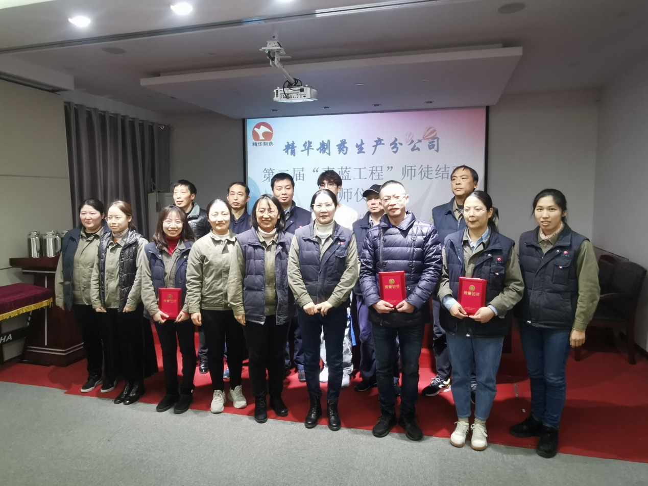 2月11日下午,精華制藥制劑生產分公司第二屆“青藍工程”師徒結對滿師儀式在制劑生產分公司三樓會議室舉行。制劑生產分公司總經理沈燕娟、副總經理閆玉梅等相關人員出席了活動。