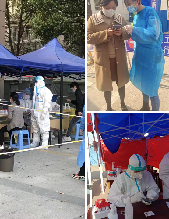 “您好,請配合我們測量體溫”、“請大家?guī)Ш每谡帧薄ⅰ罢執(zhí)崆皽蕚浜蒙矸葑C”······他們在現(xiàn)場協(xié)助查驗雙碼、測量體溫、維護現(xiàn)場秩序、對老人進行掃碼幫助等,大慶社區(qū)、大南社區(qū)、濠東社區(qū)等均可見揚子碳素志愿者們忙碌的身影。