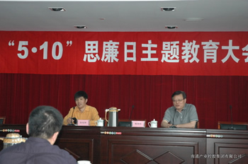 2012年5月11日下午,南通產控集團召開了“5.10” 思廉日主題教育大會,集團公司本部全體工作人員、全資控股企業及集團所屬黨組織領導班子成員參加了會議。南通市紀委常委、監察局副局長張建明同志為大家做了黨風廉政建設的輔導報告,張局長以豐富的反腐敗案例,為大家上了一場意義深刻的廉潔從業教育課,他要求各投資控股企業要切實加強黨風廉政建設,企業經營 領導班子成員要嚴格遵守《廉政準則》及《國有企業領導人員廉潔從業的若干規定》,落實國有企業“三重一大”的各項制度措施,做到規范經營行為,加強廉潔自律,推動企業和諧健康發展。會上,集團公司紀委還開展了廉潔從業的知識測試,與會人員遞交了領導人員個人有關事項報告表。