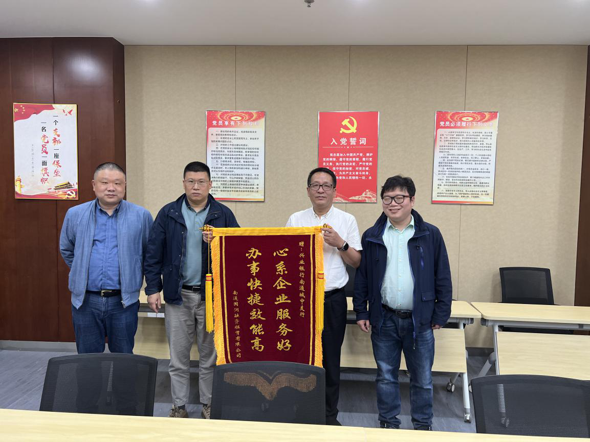5月12日,由黨支部副書記吳小兵帶領財務部部長吳鋒、業務一部部長陳軼一行前往江蘇銀行、農業銀行、興業銀行,分別送上“心系企業服務好,辦事快捷效能高”的錦旗,感謝在疫情期間銀行對公司資金審批、項目上報、資金撥付等方面給予的大力支持。在送錦旗的活動中,黨支部吳書記首先對各家銀行在疫情防控期間的大力支持表示感謝,同時表示希望通過此次黨建共建活動加強公司與銀行之間的交流,既錘煉黨性,又增進友誼,今后將按照“資源整合、優勢互補、互利共贏、共同提高”的原則,繼續加強溝通,積極探索黨建創新模式,推動雙方共建、共享、共贏。