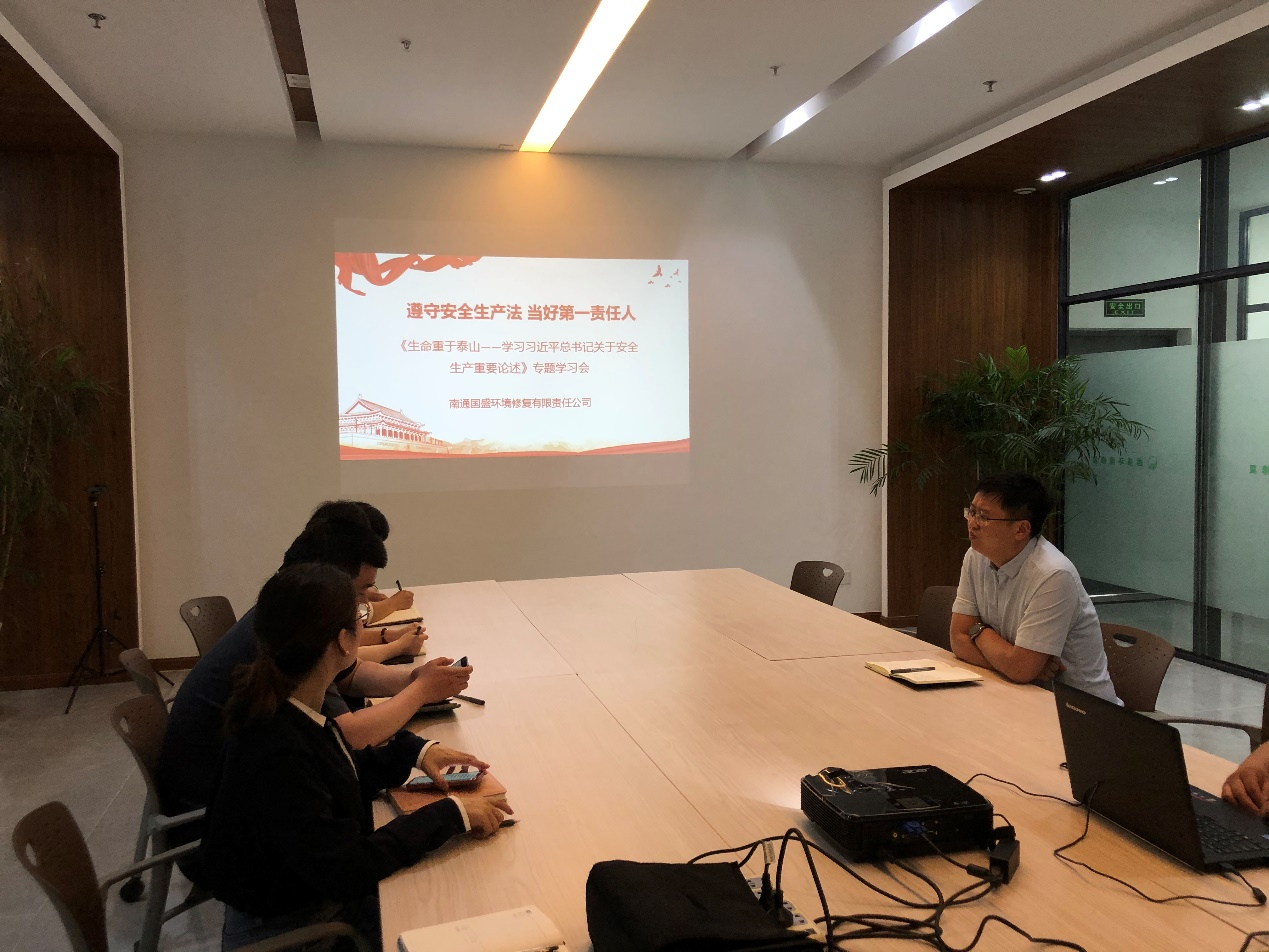 為進一步加大全公司安全生產宣教力度,推動落實企業安全主體責任,全面提高員工安全素質,6月13日下午,國盛環境在會議室開展“遵守安全生產法 當好第一責任人”主題活動,組織全體員工集中學習《生命重于泰山——學習習近平總書記關于安全生產重要論述》電視專題片。