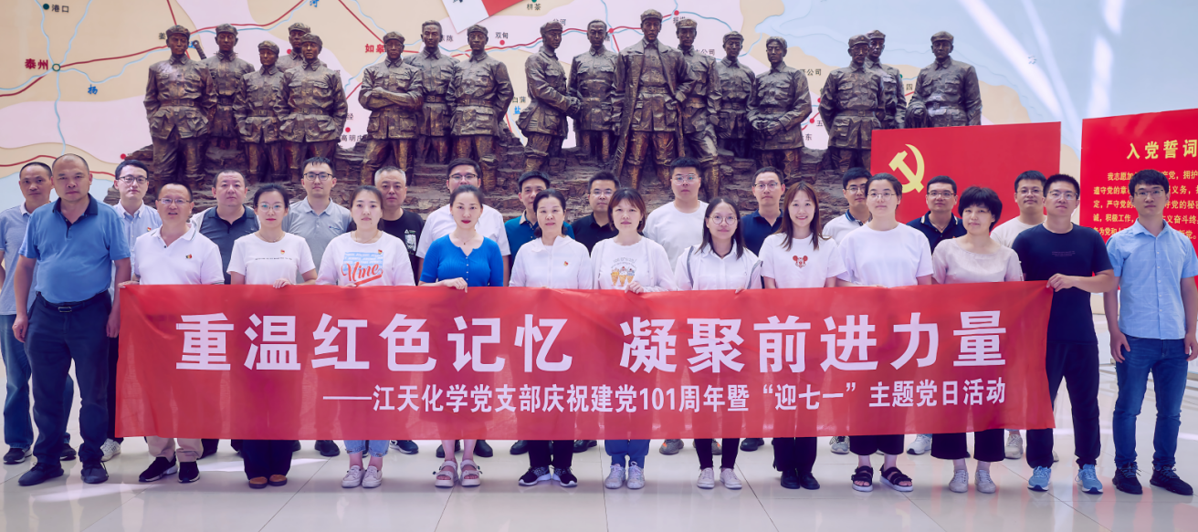 為慶祝中國共產黨成立101周年,根據公司黨支部的統一安排,6月26日,江天化學黨支部黨員、預備黨員、發展對象、入黨積極分子以及入黨申請人赴海安蘇中七戰七捷紀念館和如皋紅十四軍紀念館開展以“重溫紅色記憶 凝聚前進力量”為主題的“迎七一”主題黨日活動。