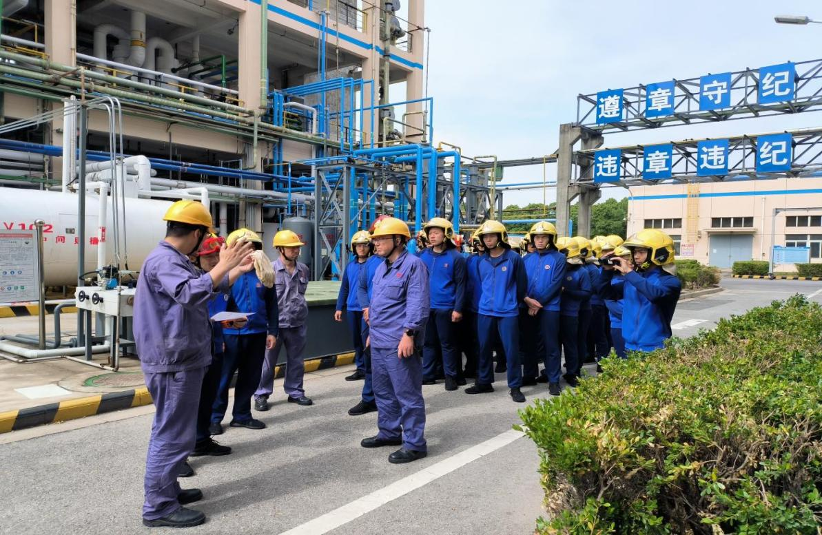 江海消防中隊的指戰員在熟悉公司各生產裝置的工藝流程、原材料、產品的危險特性及應急處置方法等基礎上,檢查了公司的應急交底箱、消防自動報警系統、消防泵房等的完好情況,最后聯合在公司一期罐區舉行了甲醇泄漏處置、火災撲救及人員疏散應急救援演練。