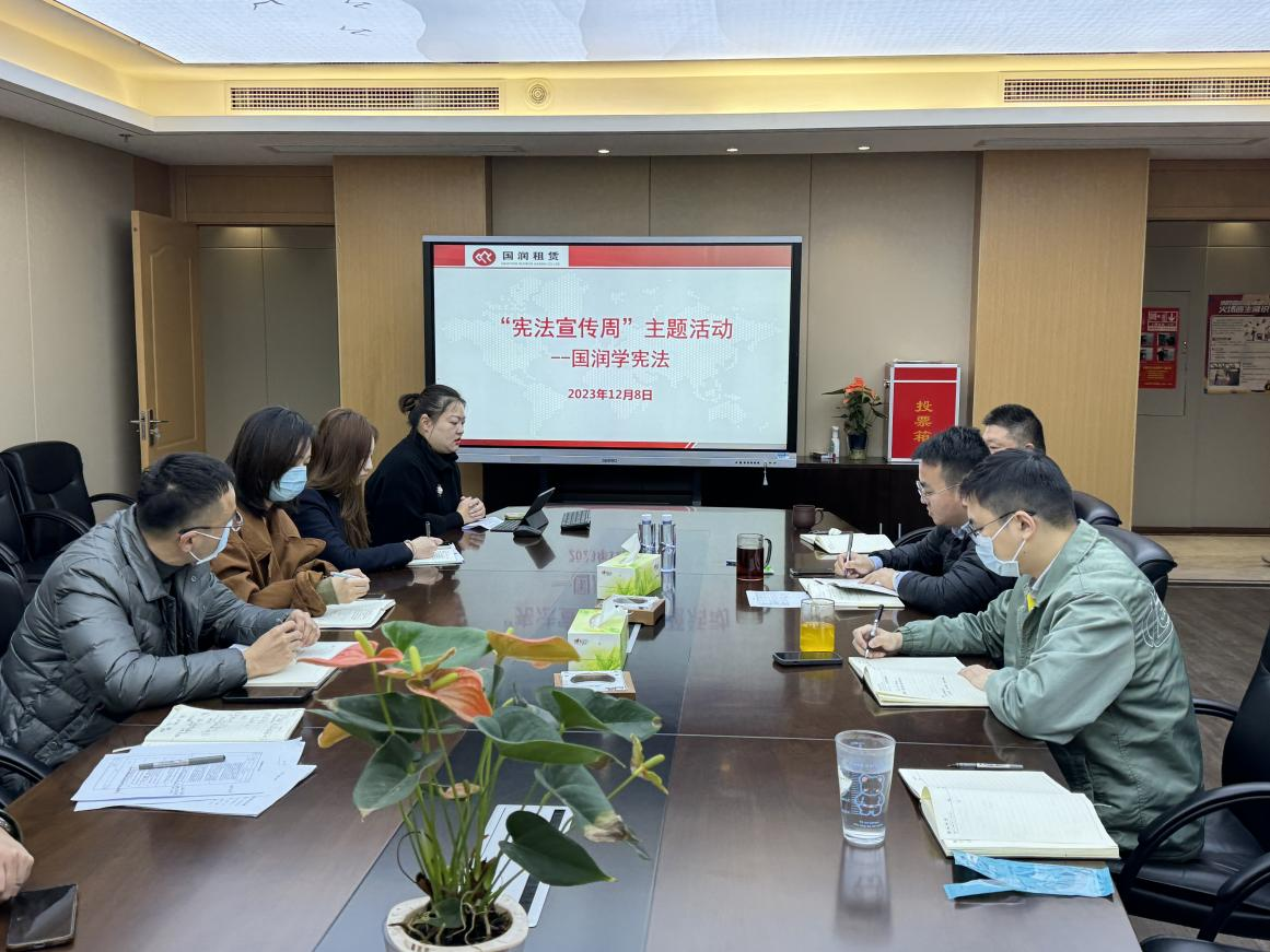 12月8日上午,在第十個國家憲法日來臨之際,南通國潤融資租賃有限公司圍繞“大力弘揚憲法精神,建設社會主義法治文化”主題,組織開展“憲法宣傳周——國潤學憲法”專題活動。為作好本次法律宣傳活動,公司領導高度重視,組織召開專題會議,向全體員工宣導中央宣傳部、司法部、全國普法辦聯合印發的《2023年全國“憲法宣傳周”工作方案》,同時對如何開展好此次活動進行了部署。公司還邀請法律顧問單位——北京盈科(南通)律師事務所的繆姝姝律師,就憲法相關知識作了專題講座,公司全體員工參會。