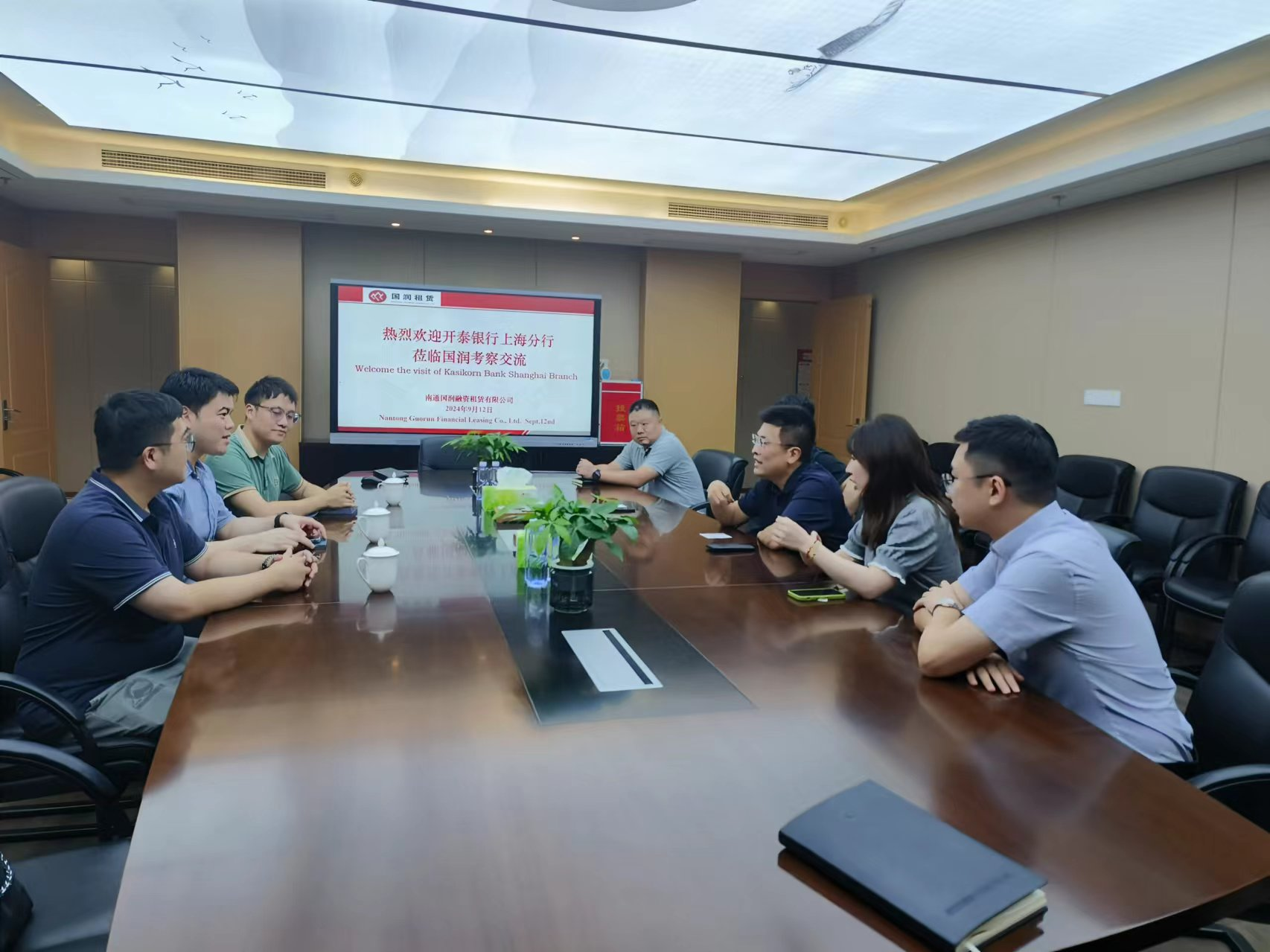 9月12日,開泰銀行上海分行行長Ukrit Archapairoj一行人到國潤租賃開展業務交流,國潤租賃陳大鵬及相關人員參加了交流座談。