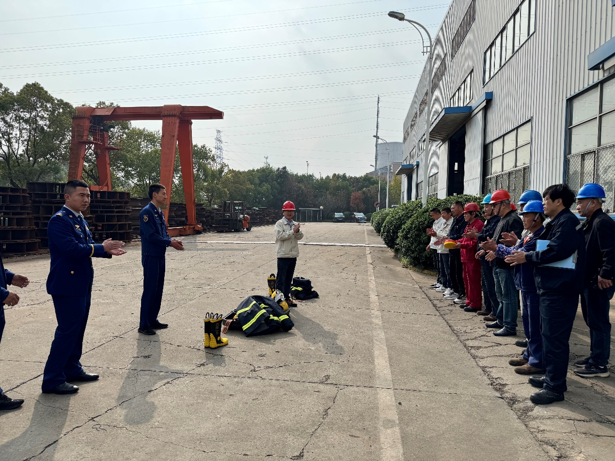 本次培訓科目包括消防作戰服的正確穿戴,空氣呼吸器的正確穿戴及使用方法,消防水帶的正確使用及日常維護等。參訓人員認真觀摩學習,并通過實操檢驗了培訓效果。